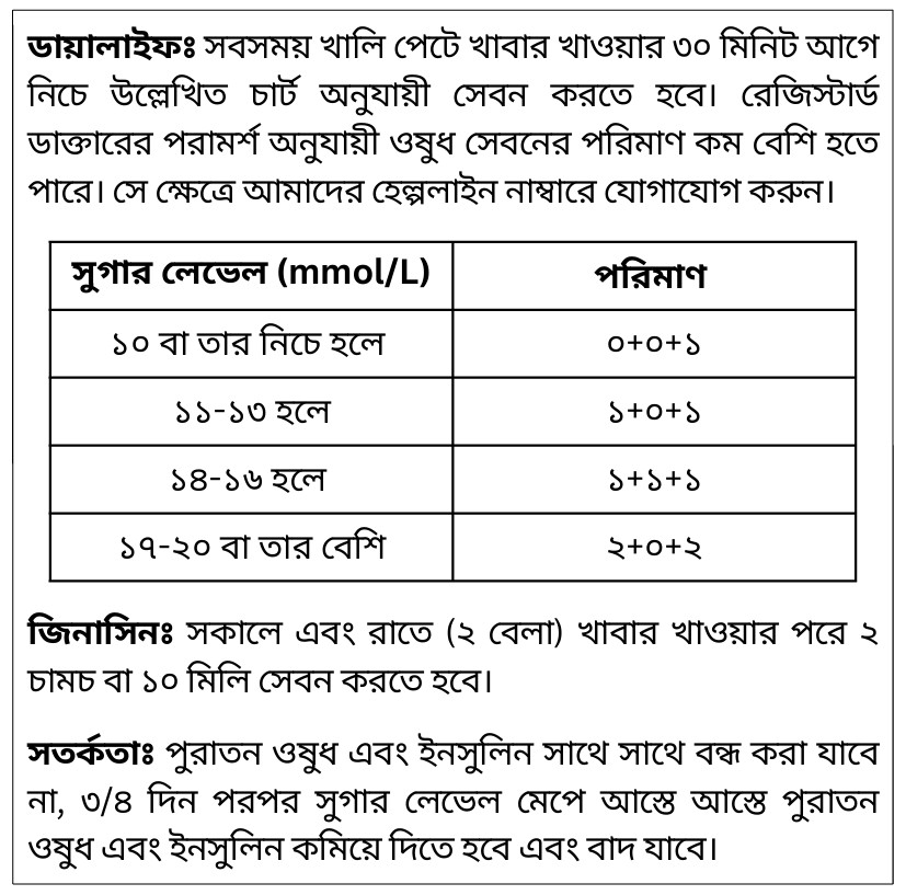 ডায়ালাইফ ১০৫ ট্যাবলেট + জিনাসিন সিরাপ